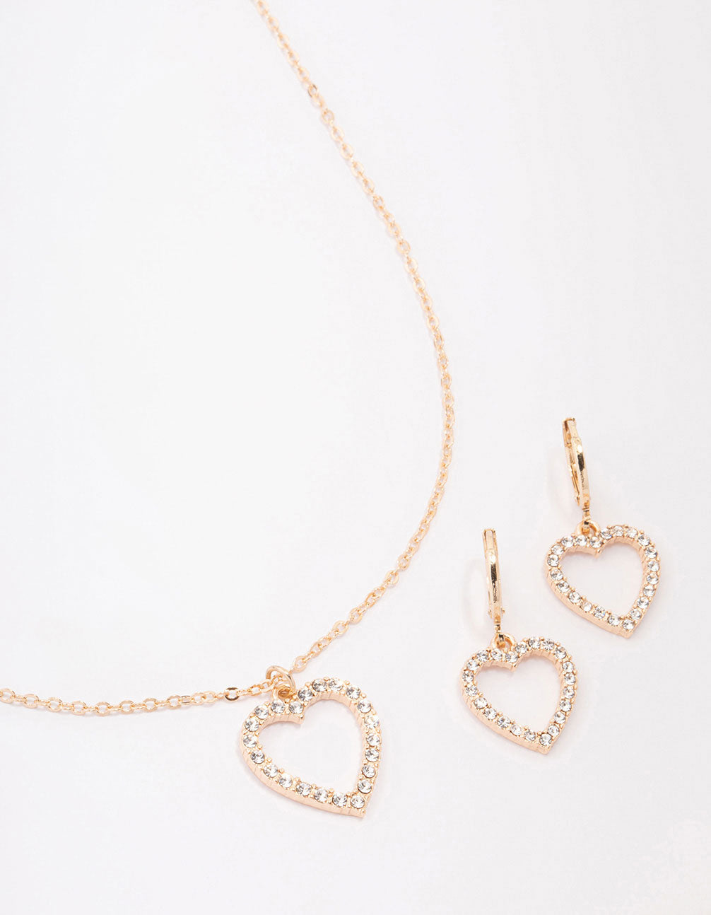 Gold Diamante Heart Necklace & Earring Jewellery Set