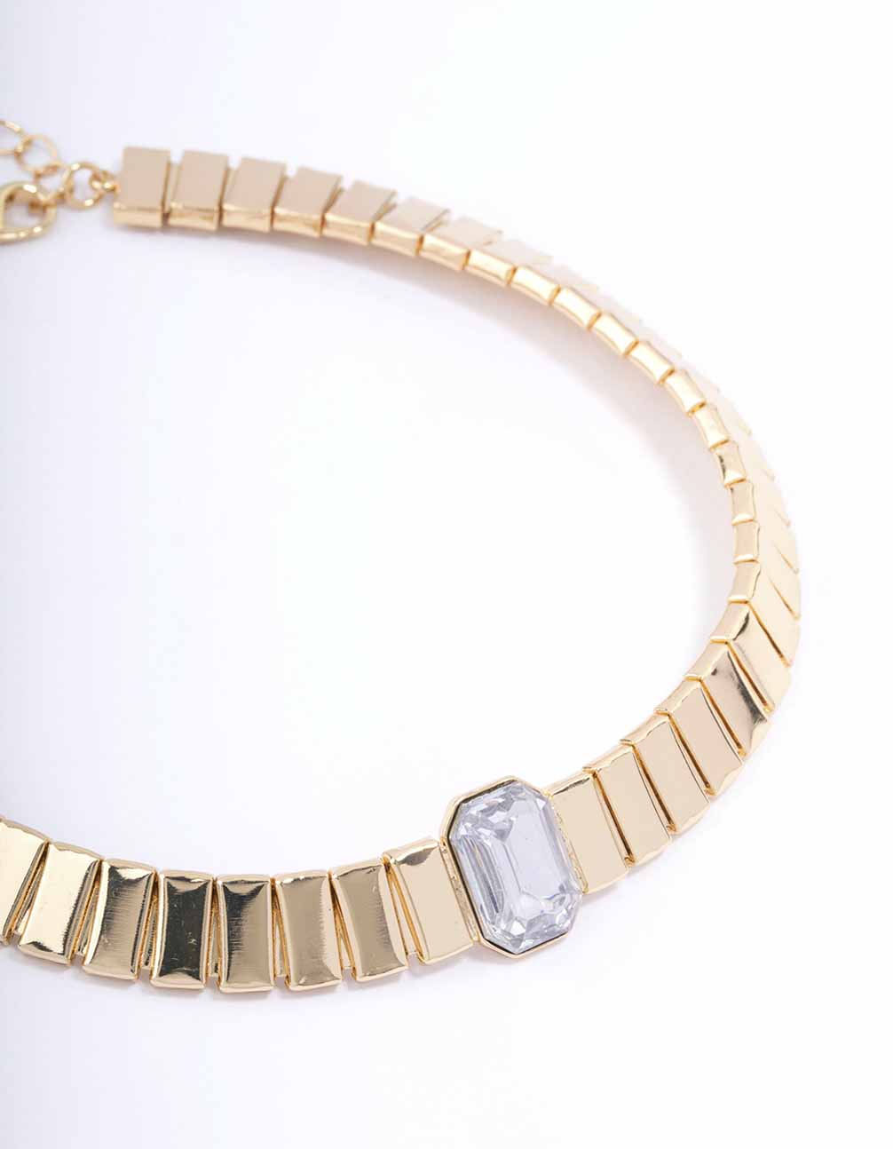 This gorgeous, gold-toned choker features a chunky silhouette and hexagon-shaped crystal in the center for a touch of glamour.