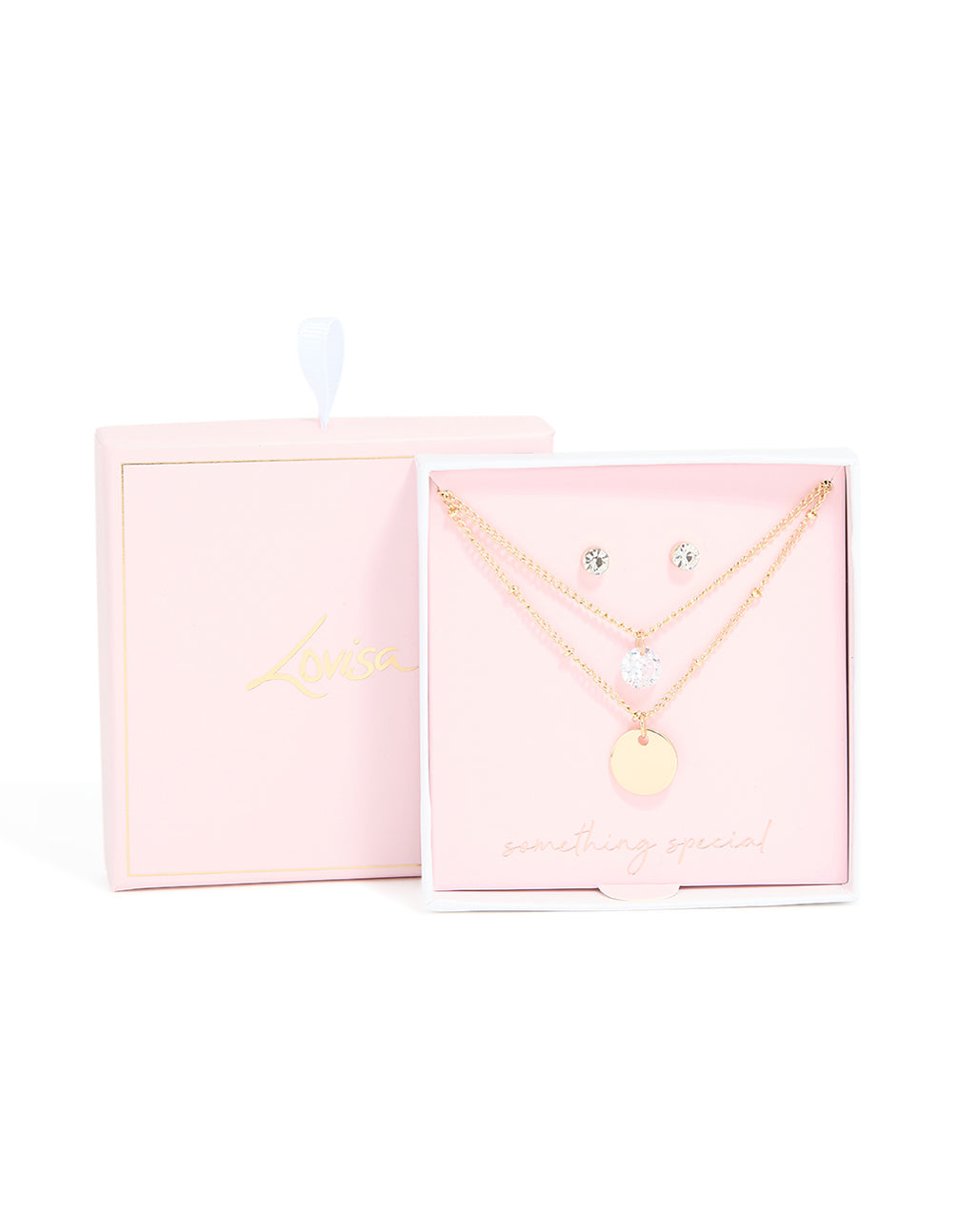 Gold Diamante Layered Necklace & Stud Earrings Set