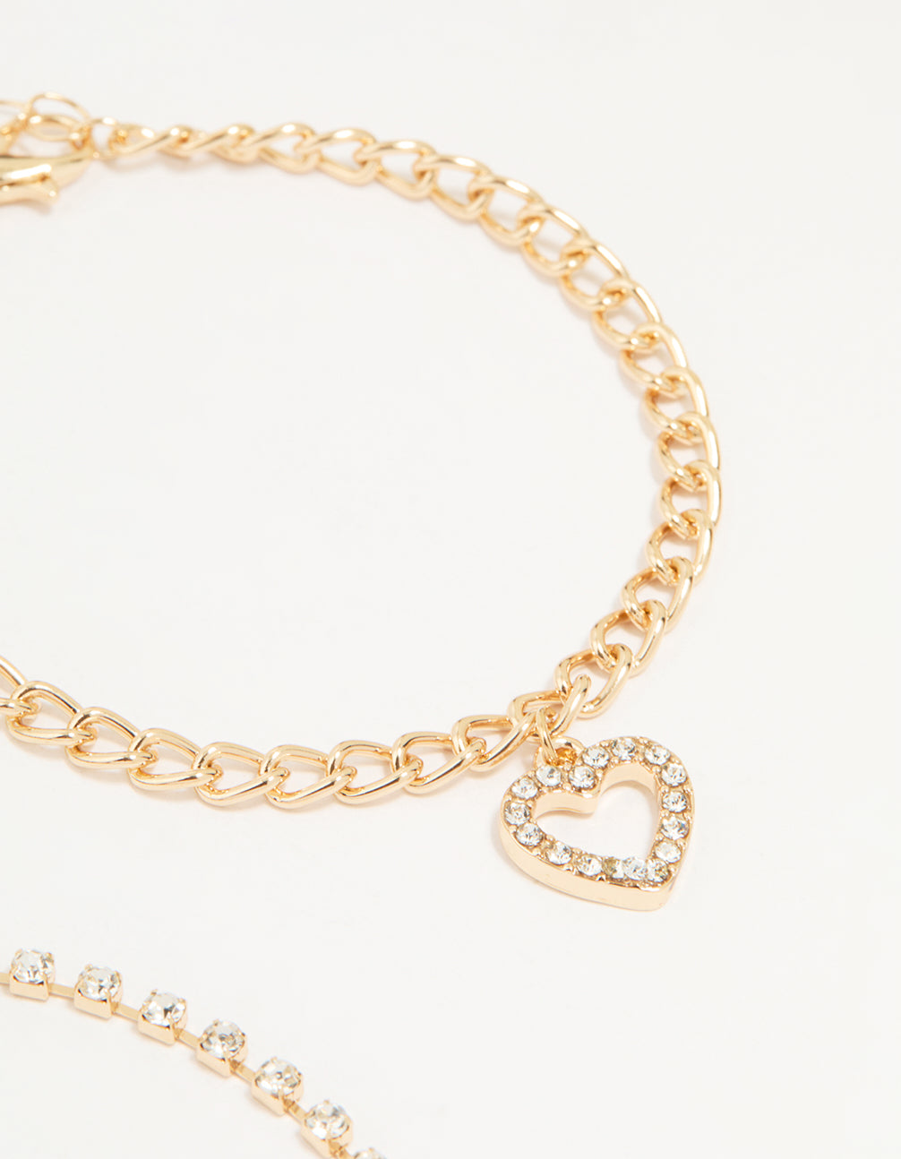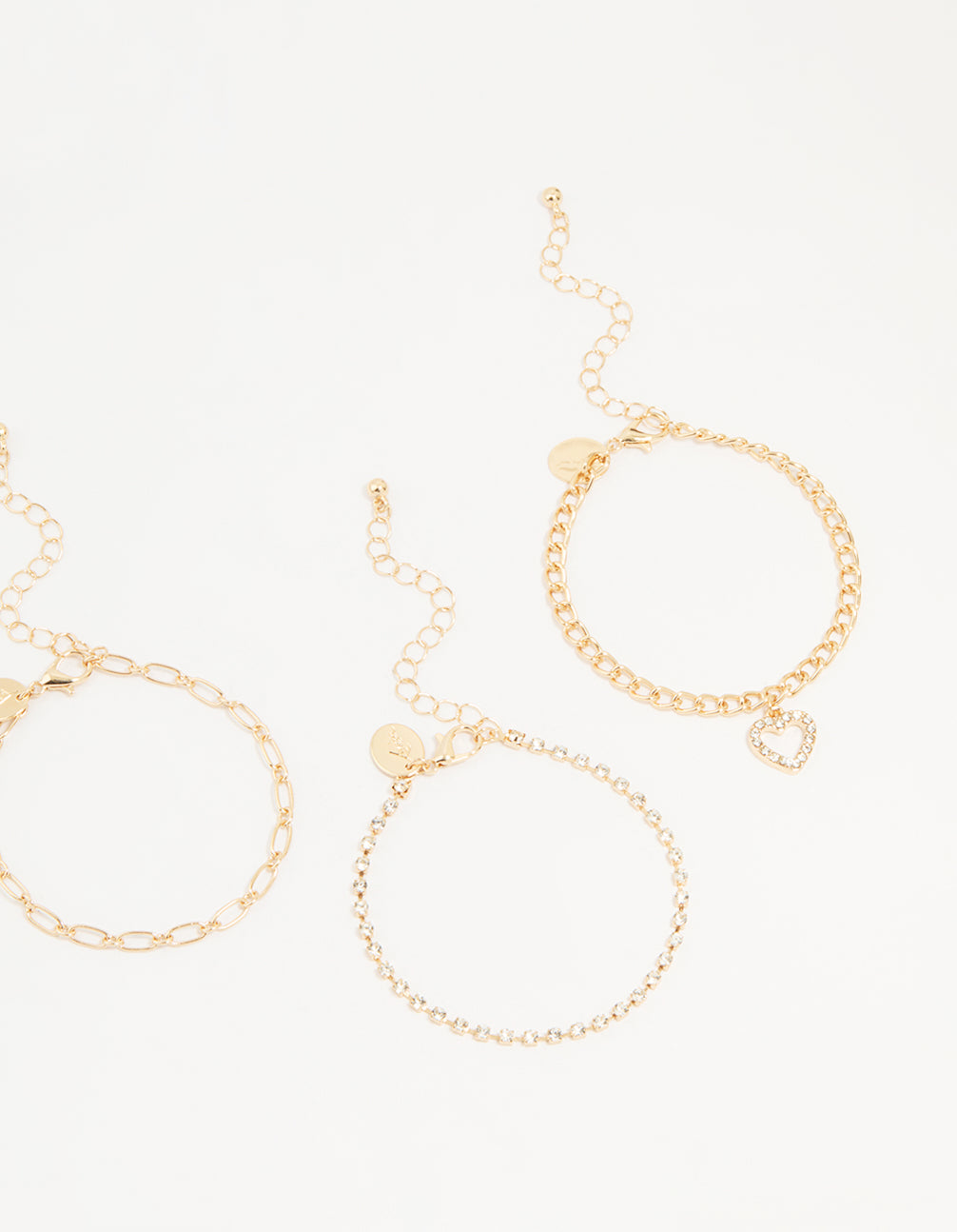 Gold Diamante Mixed Chain Heart Bracelets 3-Pack