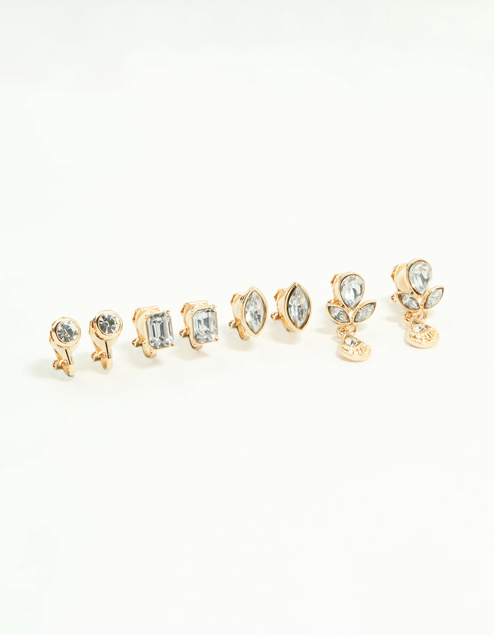 Gold Diamante Mixed Shape Clip-On Earrings 4-Pack