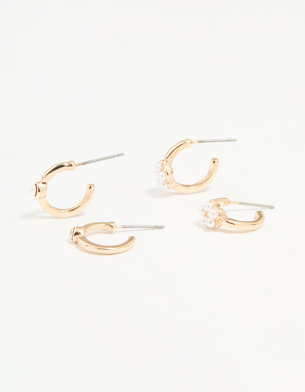 Gold Diamante Pearl Flower Hoop Earrings 2-Pack