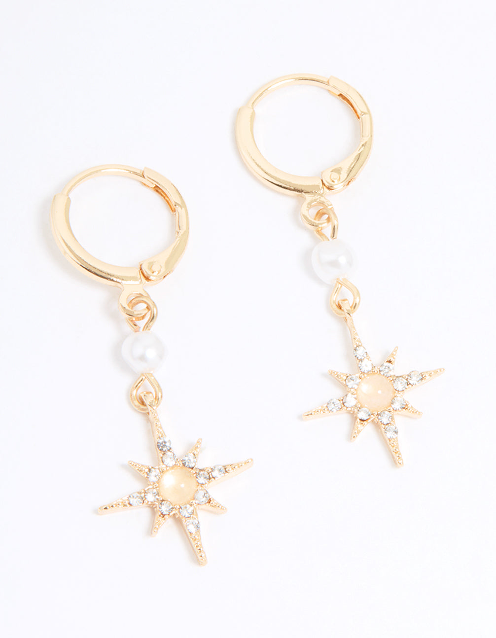 Gold Diamante & Pearl Star Drop Huggie Earrings