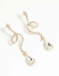 Gold Diamante Snake Drop Earrings