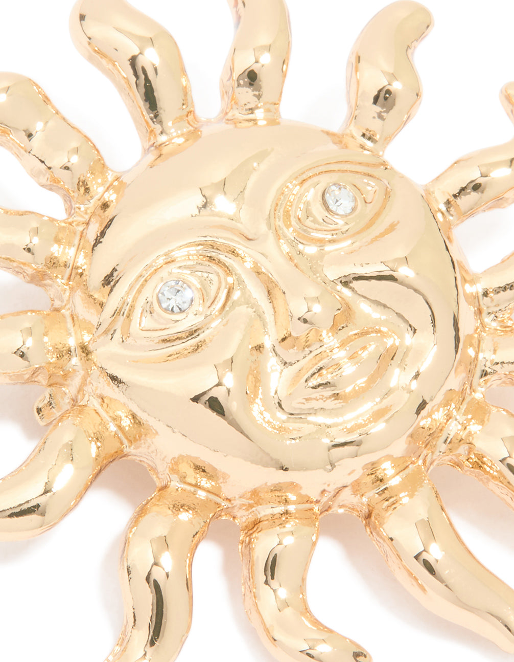 Add a touch of sparkle to your outfit with the Gold Diamante Sun Brooch! It features a radiant sun-inspired design, crafted in a stunning gold finish and embellished with shimmering diamante details. Perfect for pinning onto jackets, scarves, or even a chic bag, this brooch is ideal for anyone looking to elevate their accessory game. Whether you're wearing it to a special event, or just want to brighten up your everyday style, this brooch is a versatile statement piece. Pair it with casual denim for a playful contrast or pin it onto a tailored blazer for a polished, elegant look. It's the perfect blend of fun and sophistication—shine on!