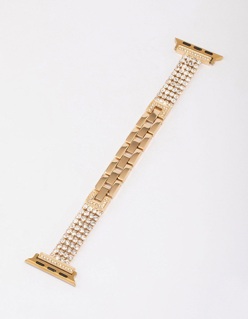 Personalise your watch device and elevate your stack with our collection of timeless and fashion-forward watch straps.Our watch bands are designed to fasten directly to your device and can be easily removed or adjusted.This band features a classic gold and diamante chain design, perfect for pairing with the gold bracelets in your stack.