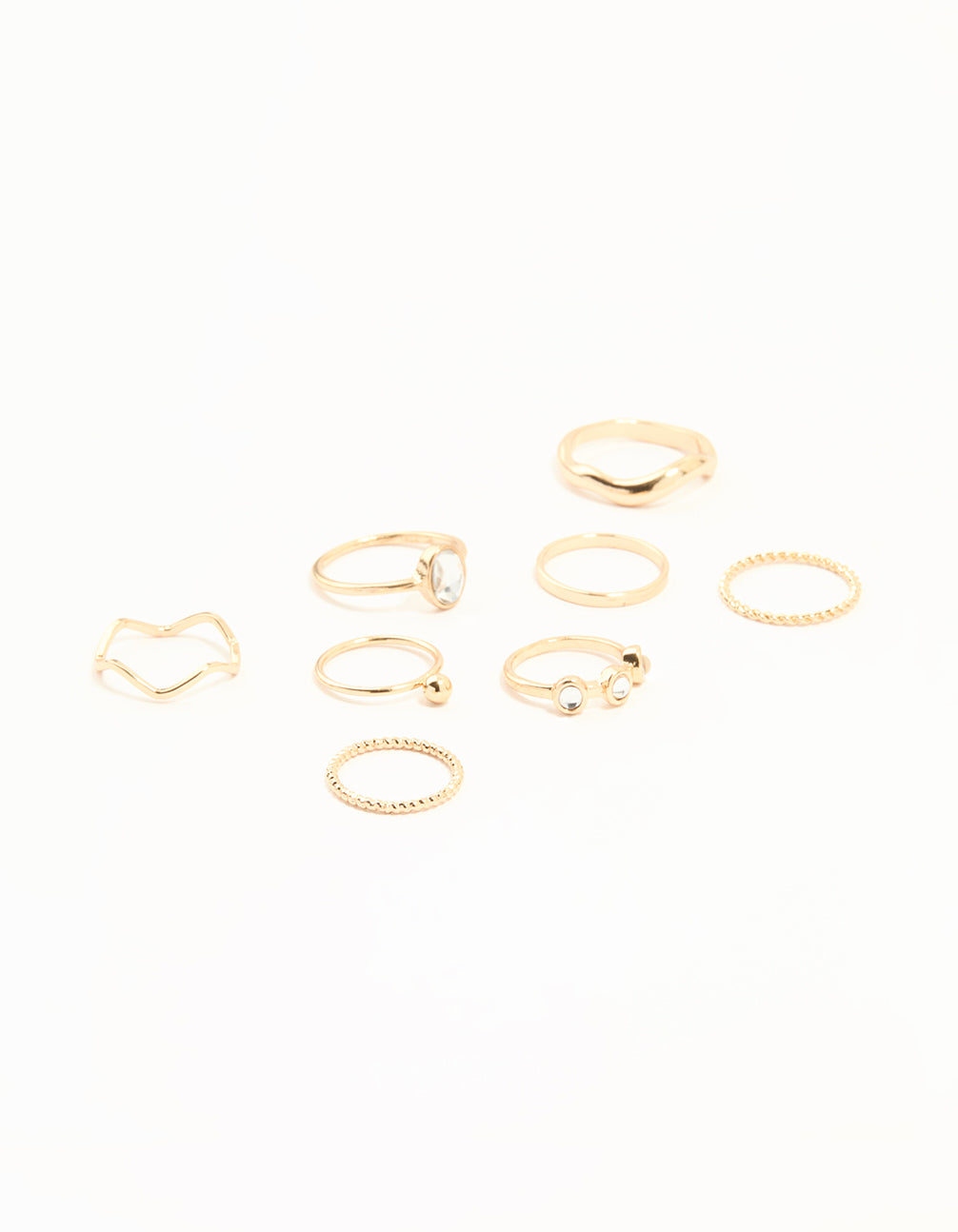 Gold Diamante Zigzag & Twisted Stacking Rings 8-Pack