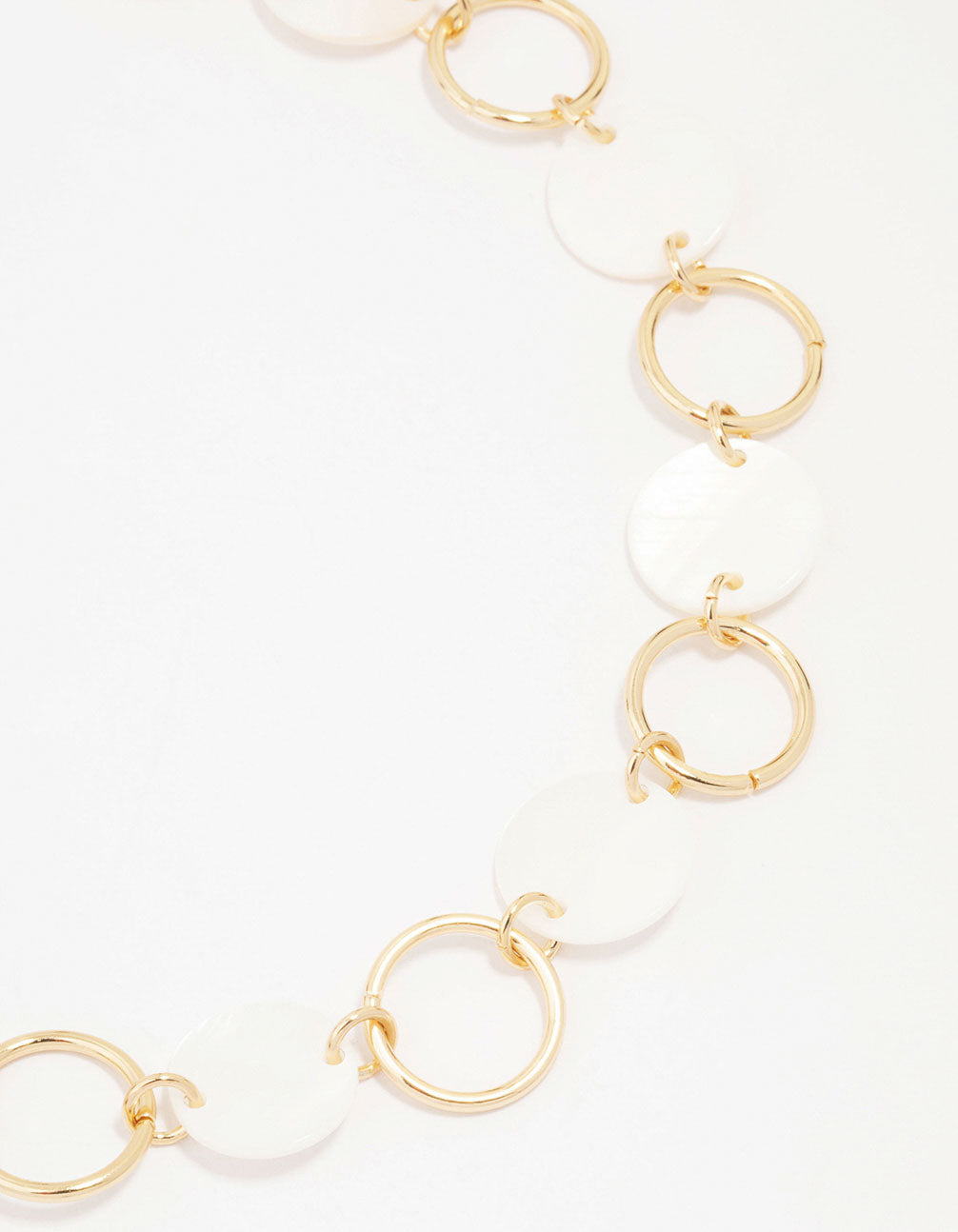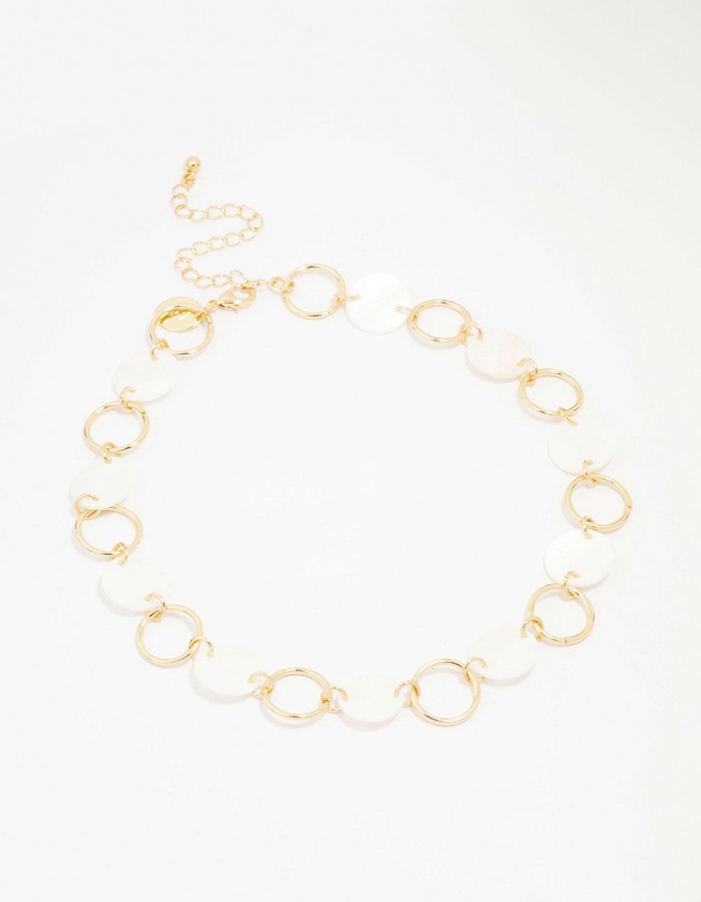 Accessorise like you're on vacation with this unique chain necklace. This textured choker necklace features a collection of white and gold discs, perfect for adding dimension to your stack.