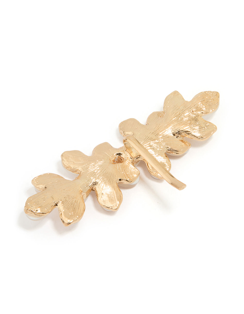 Add a touch of elegance to your bridal look with this Gold Flower Hair Hook. Perfect for wedding hairstyles or any special occasion, this hair accessory features a chic double-flower design in gold. The clever hook detail attaches easily to any hair tie, keeping your ponytail neat and stylish all day long. Pair it with a half up half down style or a sleek updo for effortless glamour.