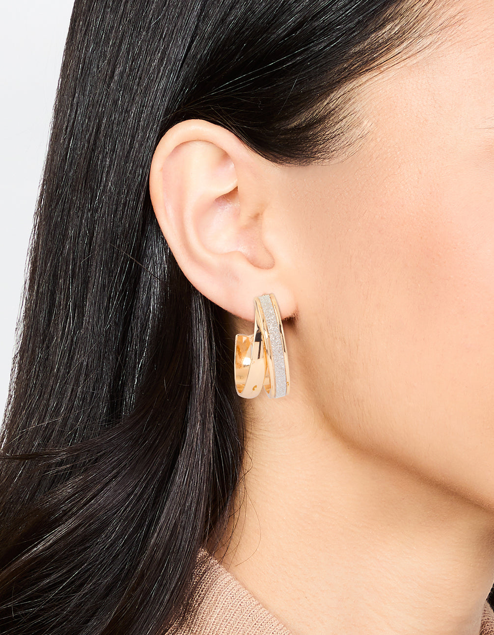 Get ready to shine with these Gold Glitter Double Strand Hoop Earrings! These sparkling beauties feature a chic double-strand design with a glitter finish, perfect for adding a touch of glamour to your look. Whether you're dressing up for an evening out or adding some sparkle to your casual wear, these gold hoops are your go-to accessory. Pair them with a sleek dress or a tailored blazer for effortless sophistication. Ideal for party vibes or a glam dinner date, these hoop earrings are a must-have for your jewellery collection.