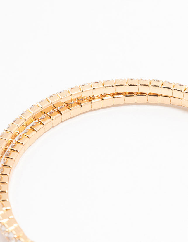 Gold Double Pointed Cubic Zirconia Bangle Bracelet