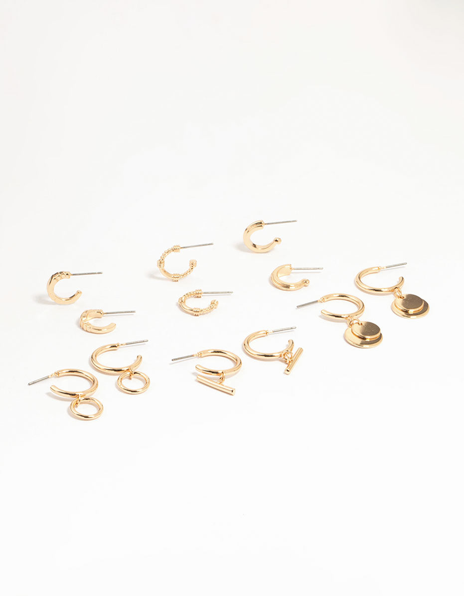 Step up your style with the Gold Drop Hoop Earrings 6-Pack! This fun set features six pairs of stylish hoops, perfect for mixing and matching and creating a pretty look.