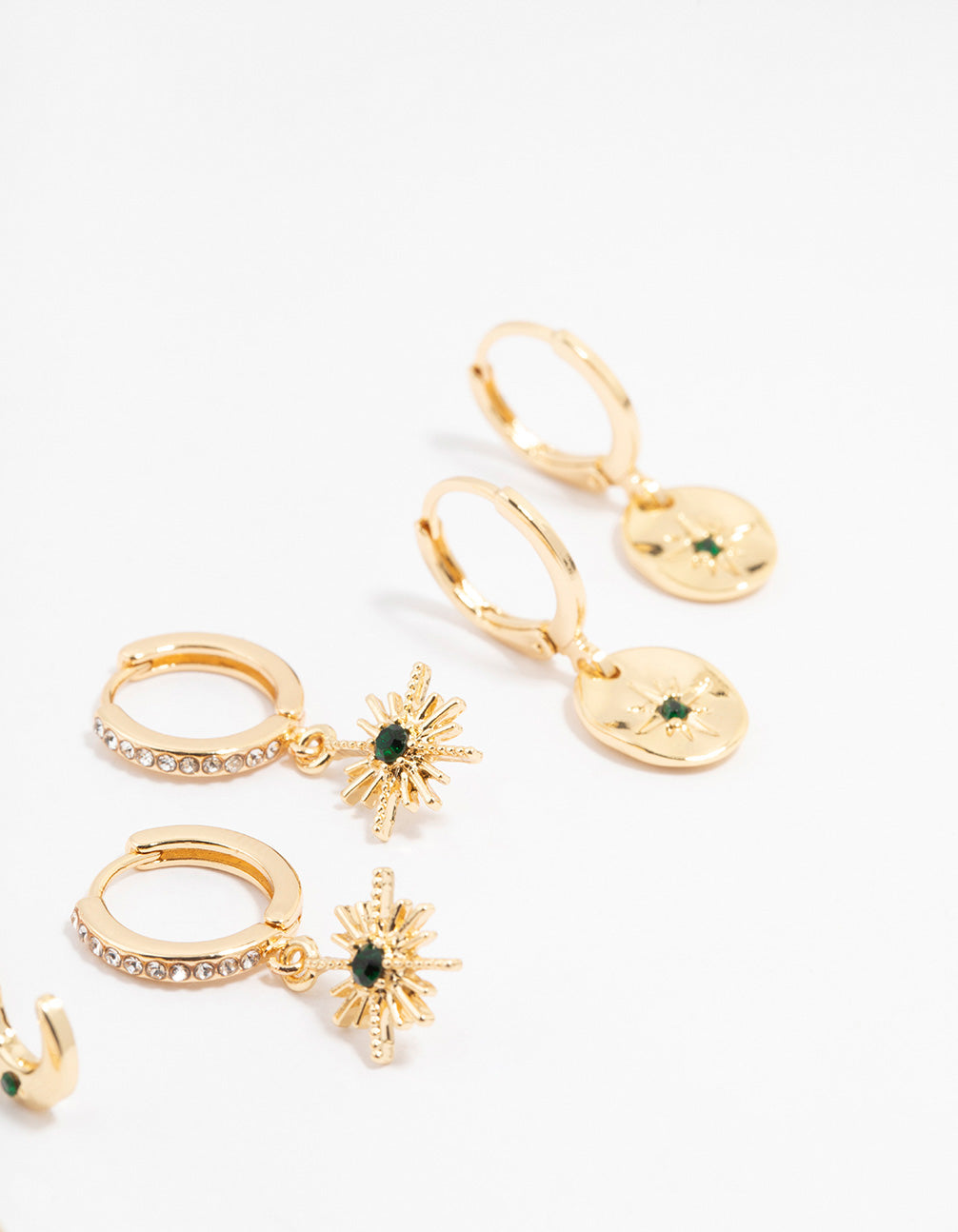 Gold Plated Emerald Celestial Huggie Earrings 3-Pack