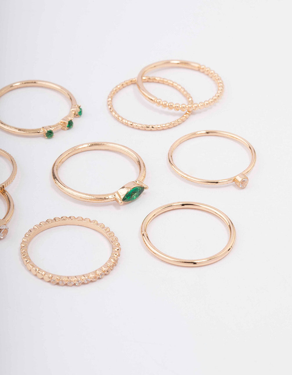 Gold Emerald Cubic Zirconia Marquise Ring 9-Pack