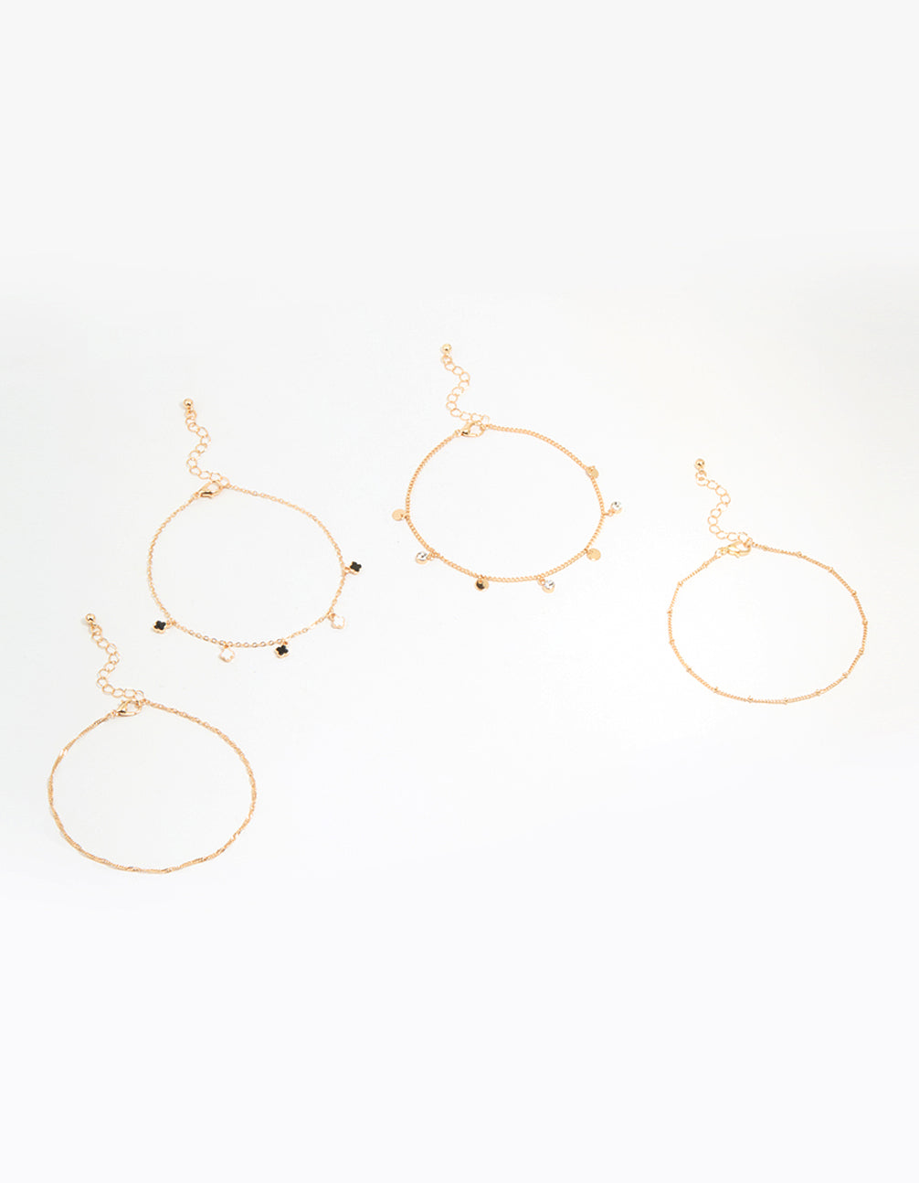 Gold Enamel Flower & Twisted Anklets 4-Pack