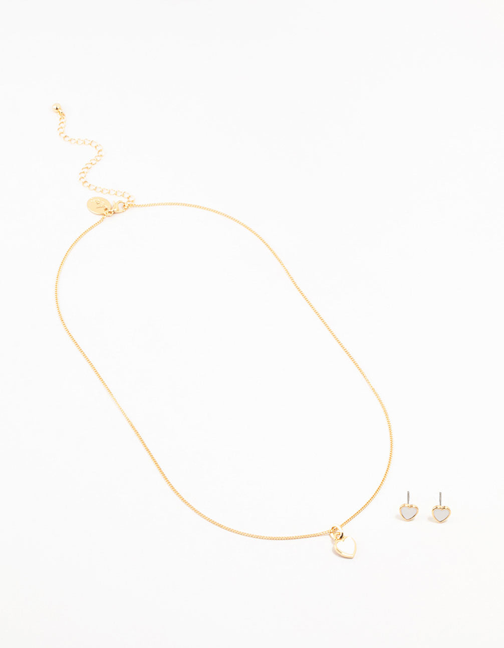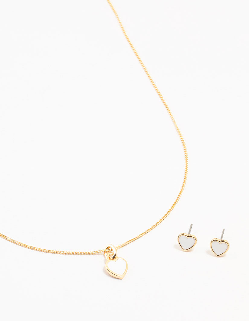 Gold Enamel Heart Necklace & Earrings Set