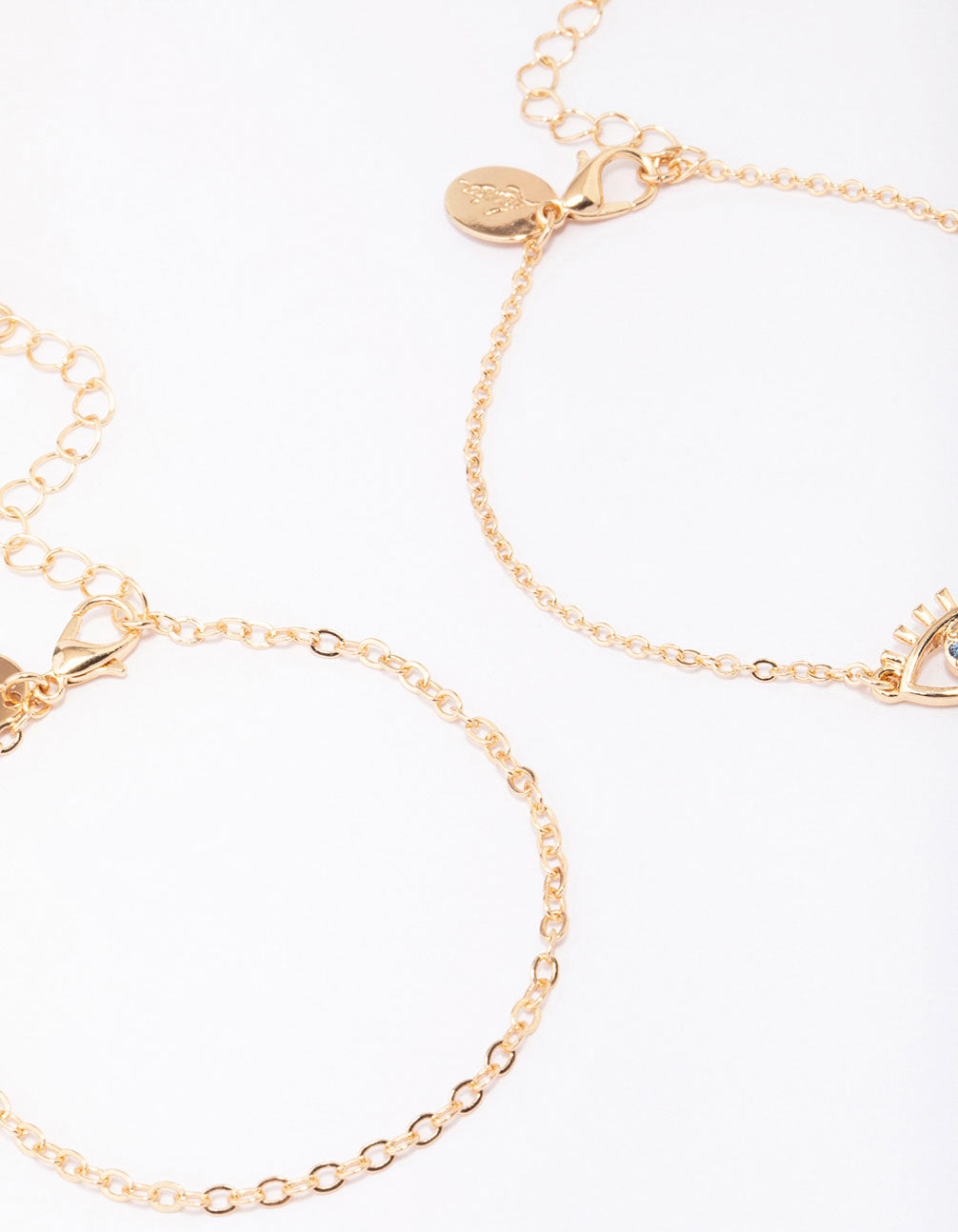Curate the stack of your dreams with this pack of dainty chains. This pack includes three individual bracelets, adorned with evil eye charms to protect your energy!