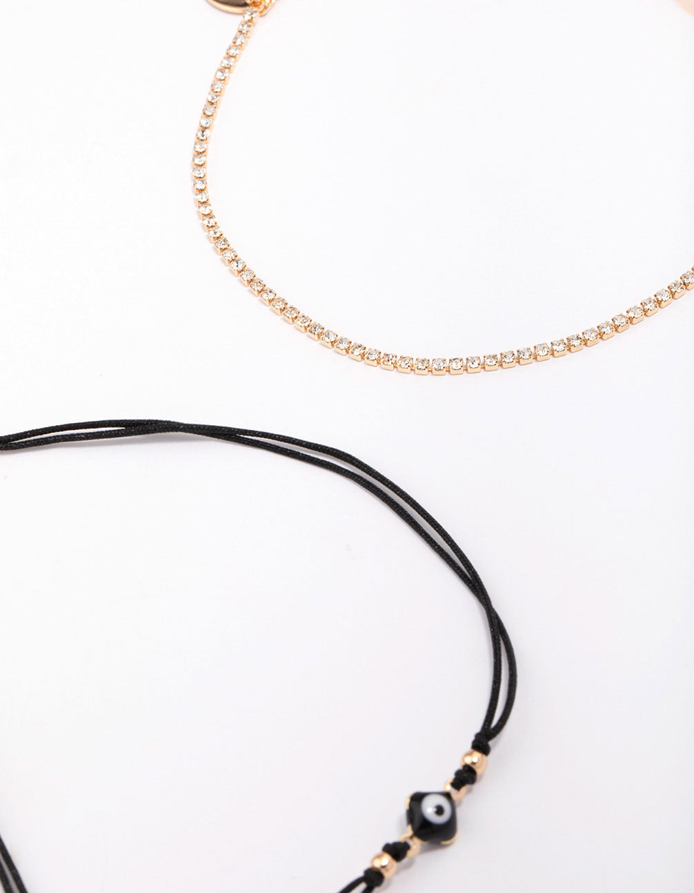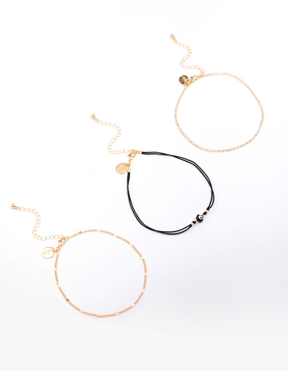 Gold Evil Eye Chain Anklet 3-Pack