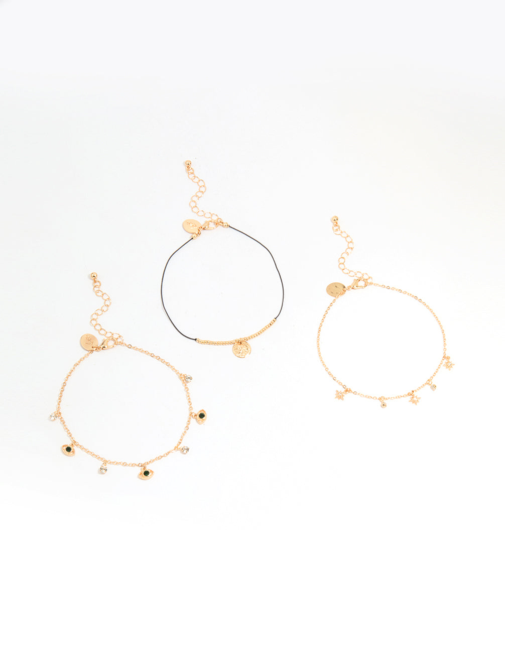Gold Evil Eye & Coin Chain Anklets 3-Pack
