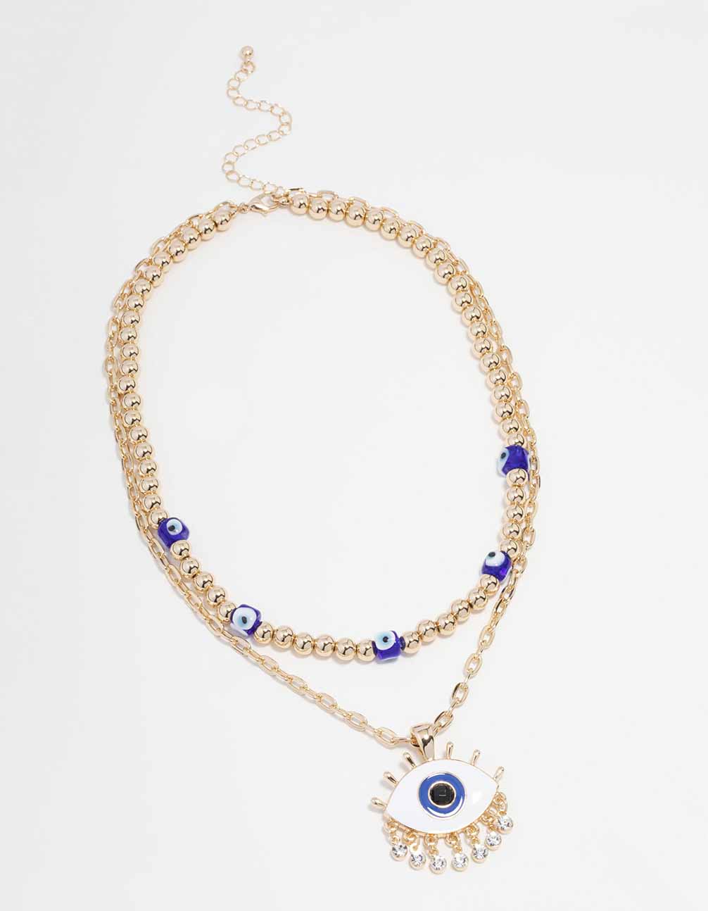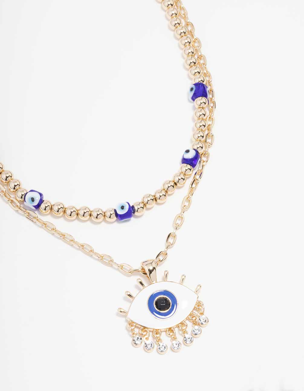 Style this Gold Evil Eye Layered Necklace for a multi-dimensional finish to your neckline.