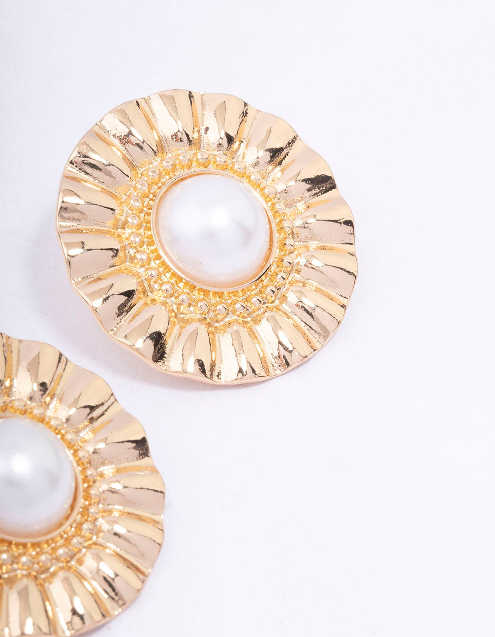 Complete your look with these ornate, round pearly studs — perfect for the office, or drinks with friends.