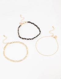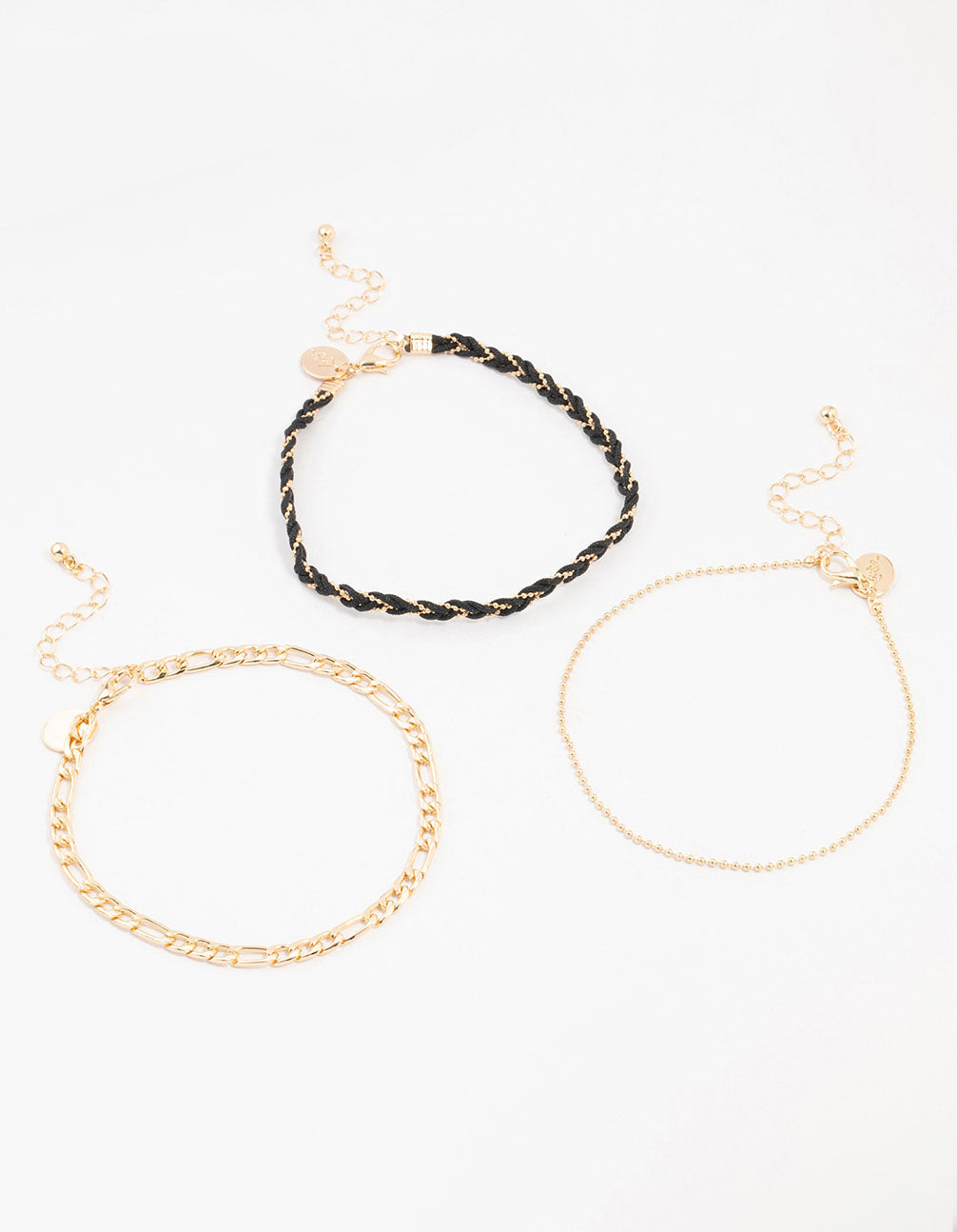 Add some extra style to your look with this chic trio of gold-tone figaro-style plaited anklets. Mix, match and layer these stylish anklets or a fun, elevated look that adds an instant style boost. Crafted from gold toned metals, these versatile anklets transition seamlessly from the beach to the bar.