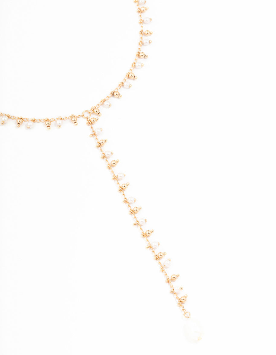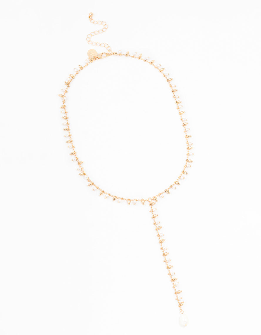 Gold Fine Pearl Y-Necklace