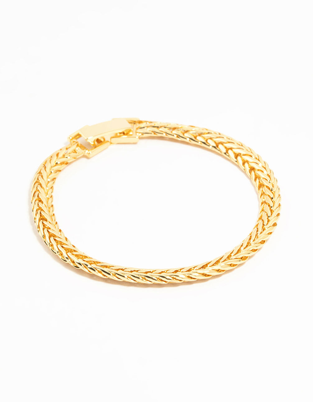 Elevate your style with this gold flat wide curb chain bracelet. Its modern design adds texture and sophistication to any outfit; just slip it on and shine!