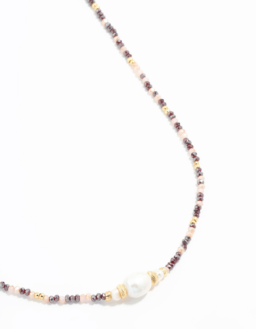 Gold Freshwater Pearl & Mini Purple Bead Necklace