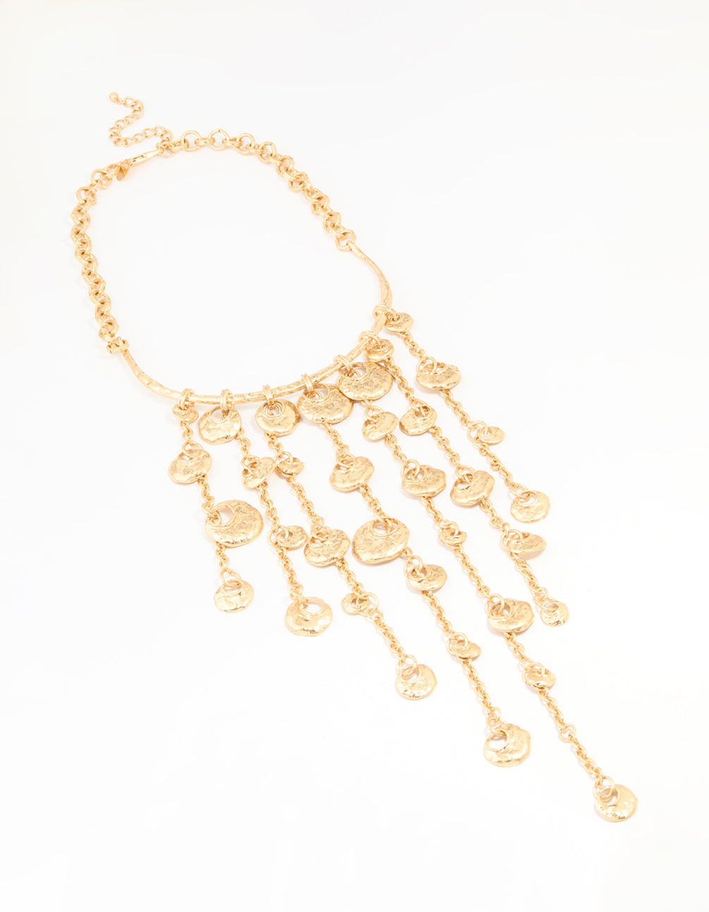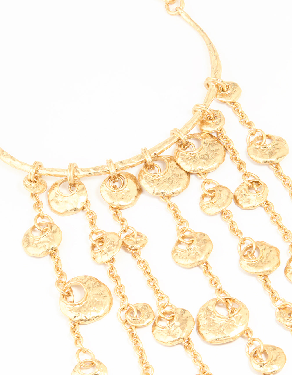 Gold Fringe Disc Statement Necklace