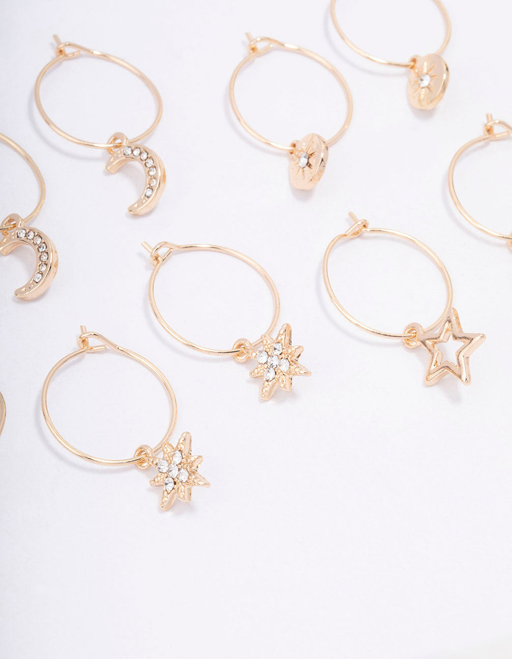 Gold Galaxy Wire Hoop Earring 6-Pack