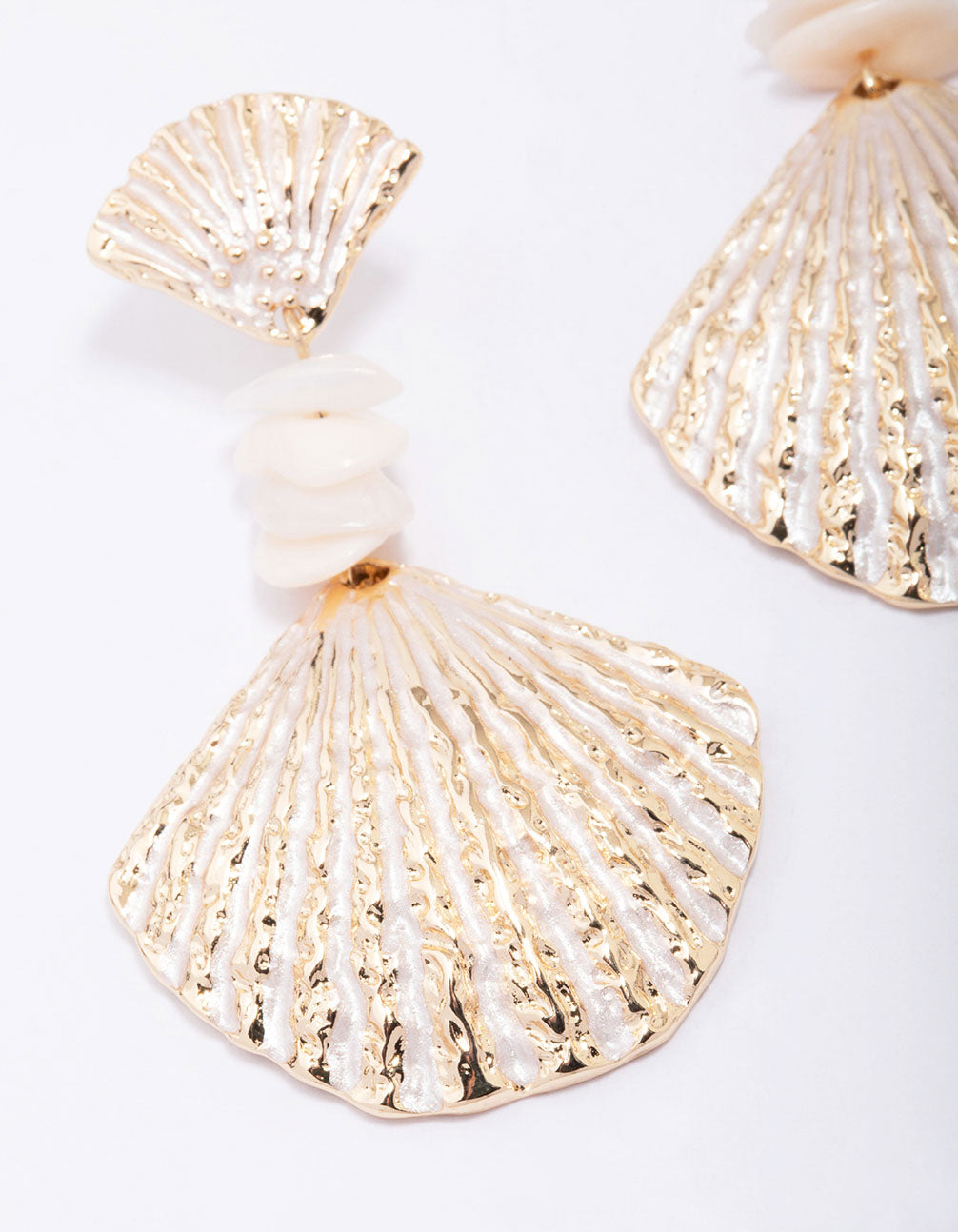 These stunning drop earrings feature modern shell motifs, designed in a gorgeous gold-toned setting for added warmth to your stack. Perfect for elevating your everyday attire or special occasions, these drop earrings add instant glamour and shine in a timeless design.