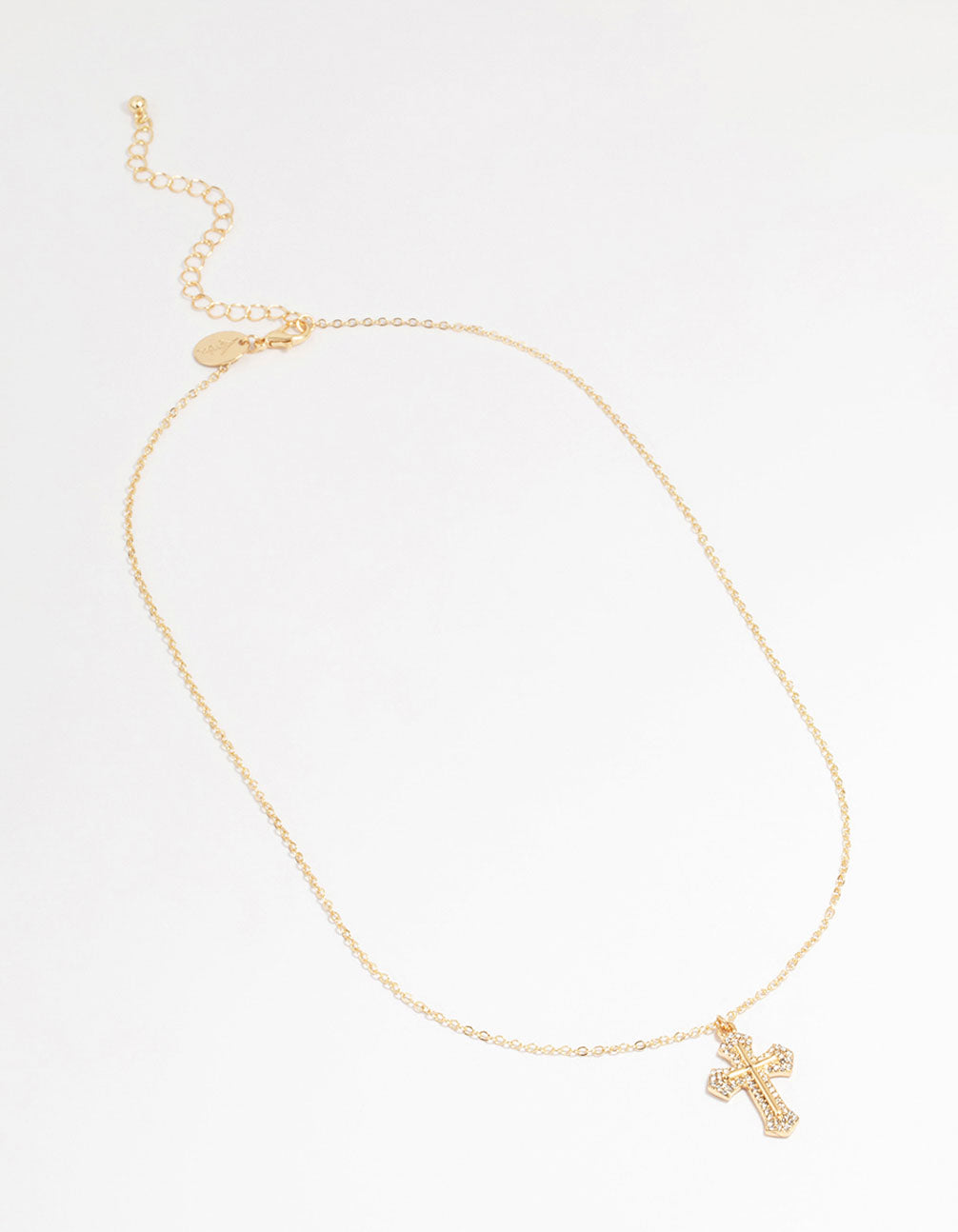 Add a bold edge to your look with the Gold Gothic Cross Pendant Necklace. This necklace features a sleek, gothic-inspired cross design. Perfect for layering with other necklaces or wearing solo.