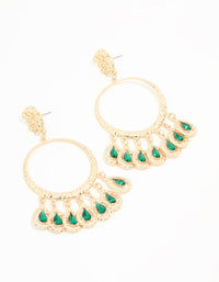 Add a pop of colour with our Gold Green Circle Drop Earrings! Featuring vibrant green accents in a dazzling gold setting, these earrings are perfect for any occasion.