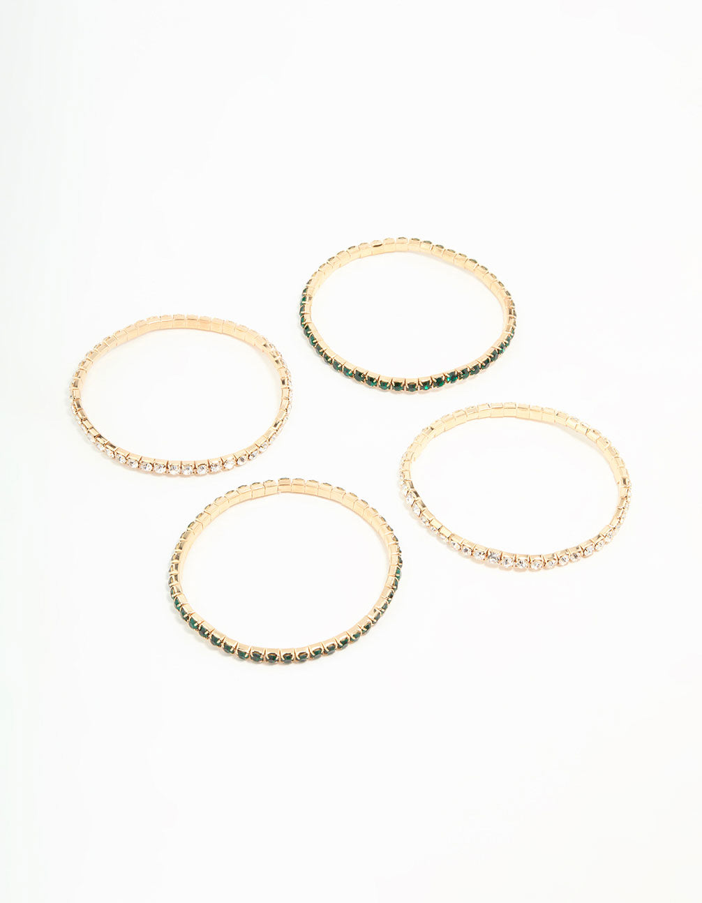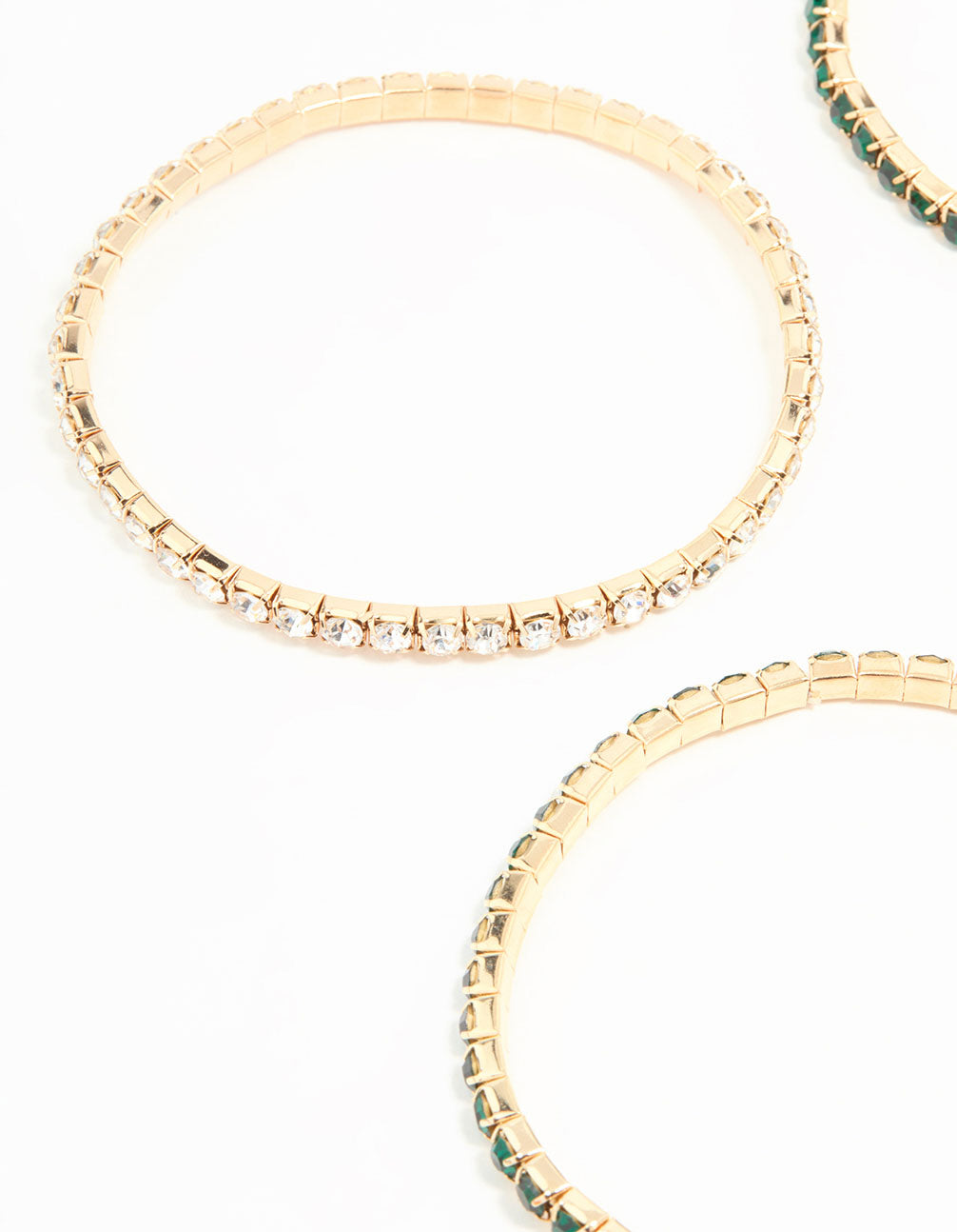 Add a pop of colour with this bangles pack! Featuring gold-toned metal and green diamante crystals, these bangles are perfect for any occasion. Easy to slip on, they elevate any look, whether for a party or casual glam.