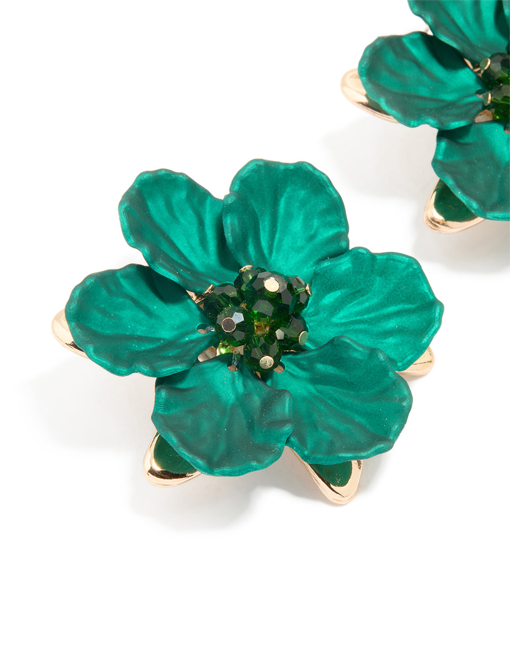 Gold Green Pearlised Extra Large Flower Earrings