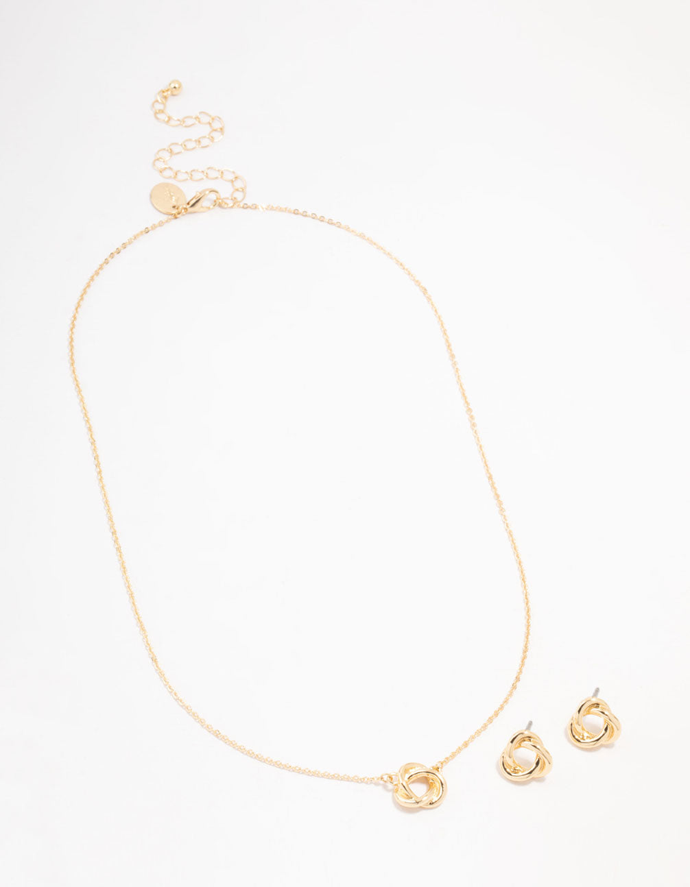 Gold Knotted Necklace & Stud Earrings Set