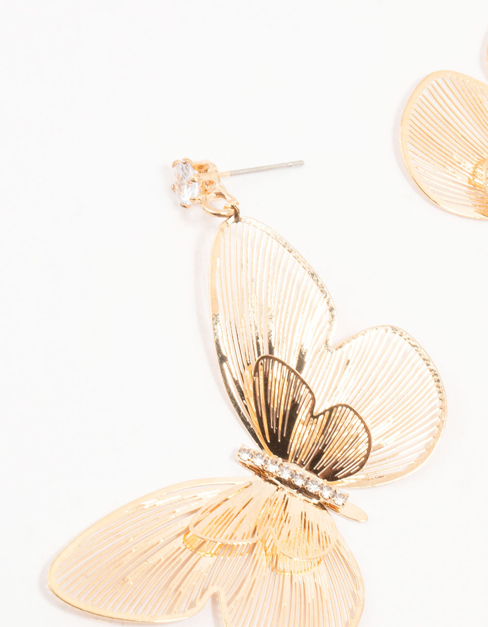 Transform your look into pure enchantment with these dazzling earrings. Featuring a whimsical Lazercut butterfly design and a sprinkle of sparkle with glittering diamante crystals, they're perfect for creating fluttery, fabulous style.