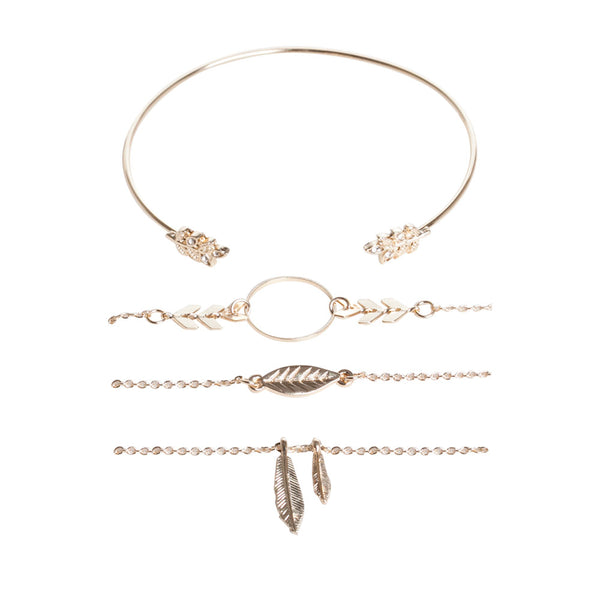 This pack features a trio of gold-toned bracelets with a variety of leaf motifs.
