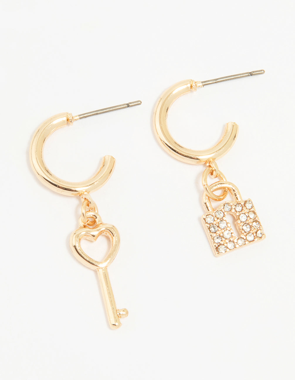 Add a playful touch to your jewellery collection with these Gold Lock & Key Huggie Drop Earrings. These huggie-style earrings feature a charming lock and key design, crafted from sleek gold-toned metal for a polished finish. Perfect for adding a subtle statement, they're great for dressing up casual outfits or complementing a chic evening look. Wear them with a flowy dress for a whimsical vibe or pair them with a blazer and jeans for effortless sophistication. Whether you're searching for huggie earrings, drop earrings, or gold jewellery with a fun twist, these versatile accessories are ideal for dates, parties, or just elevating your everyday style.
