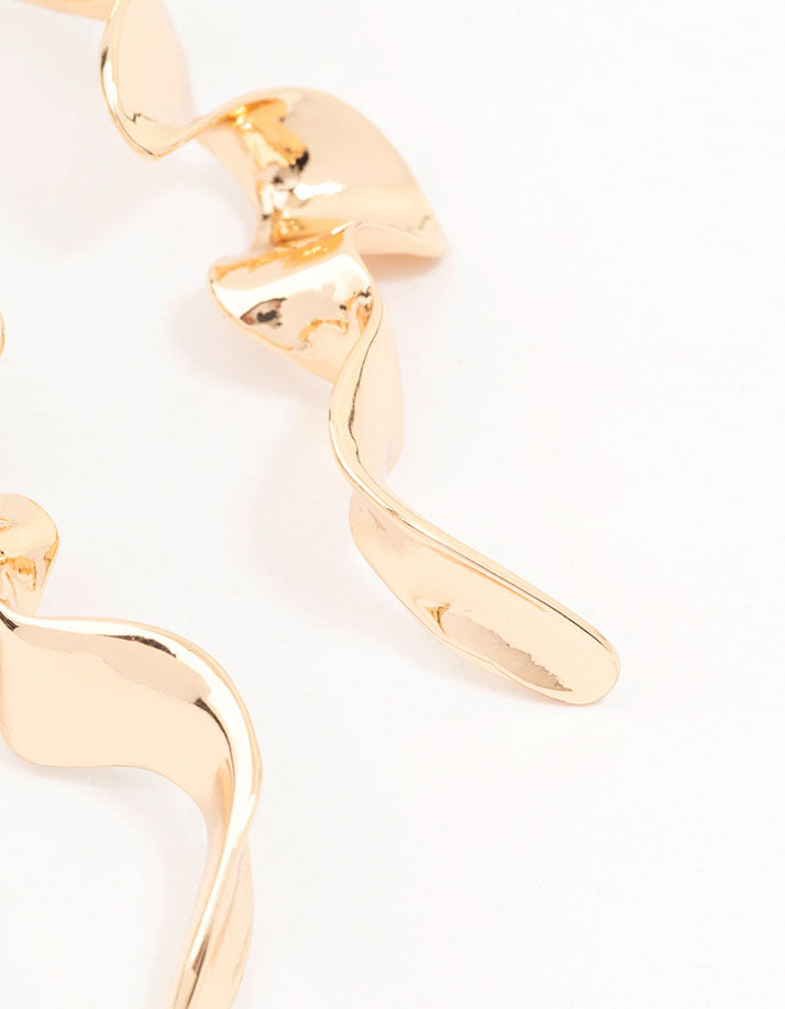 Make a statement with these playful gold wavy drop earrings! Their modern wavy shape is designed to stand out and add flair to any look. Pair them with a basic outfit for extra impact or rock them with a fun event ensemble for maximum style!