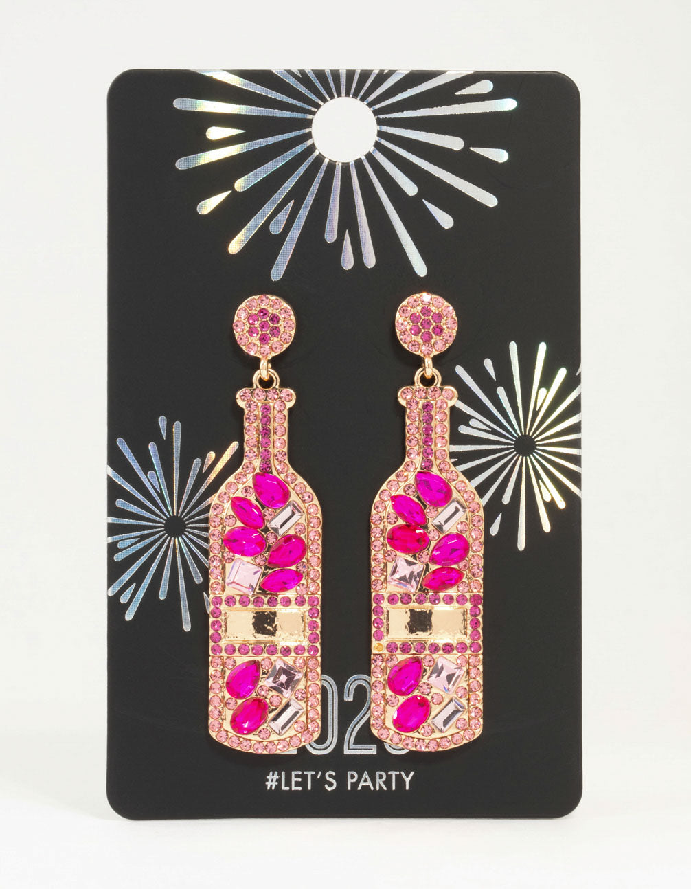 Pop the bubbly with these chic gold-toned earrings! Featuring a pink champagne bottle design with sparkling diamante crystals, they're perfect for New Year's celebrations and beyond.