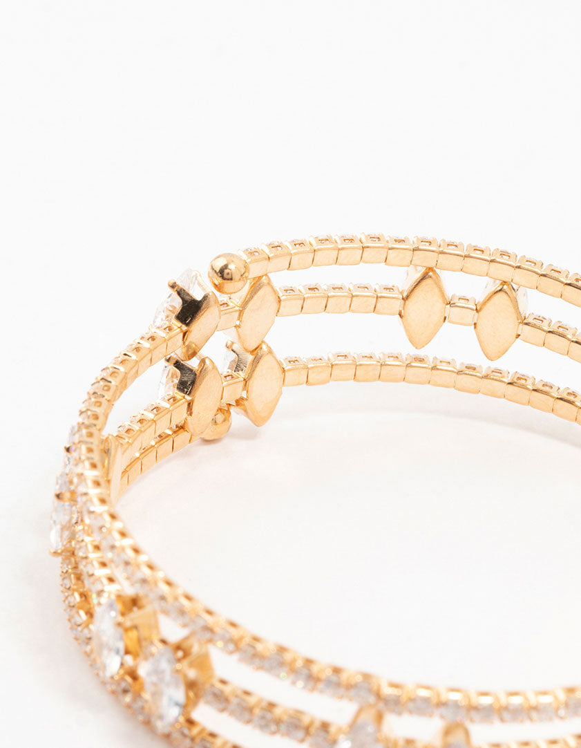 Gold Marquise Cubic Zirconia Wrapped Bangle Bracelet