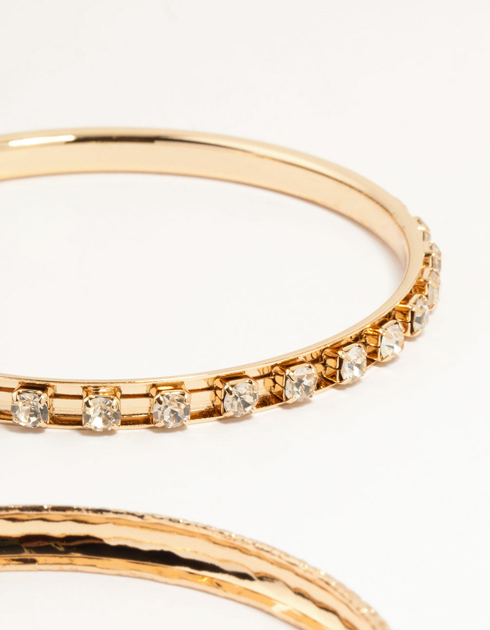 Boost your style with this gold toned bangle pack. This set features 4 chic bangles with textured finishes for a statement look, they're perfect for layering or wearing solo.