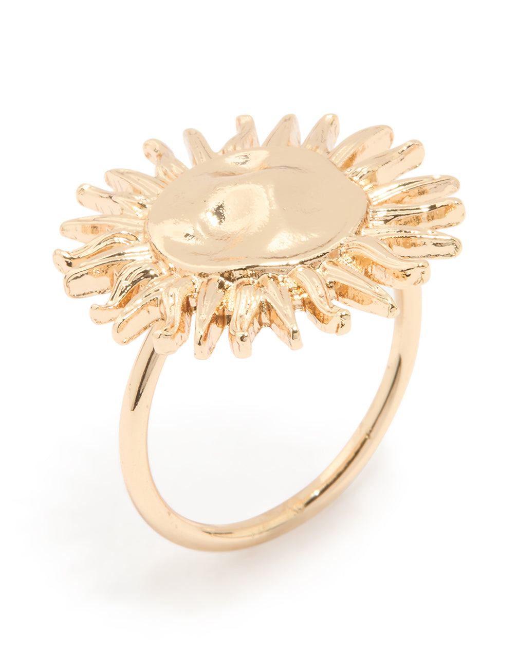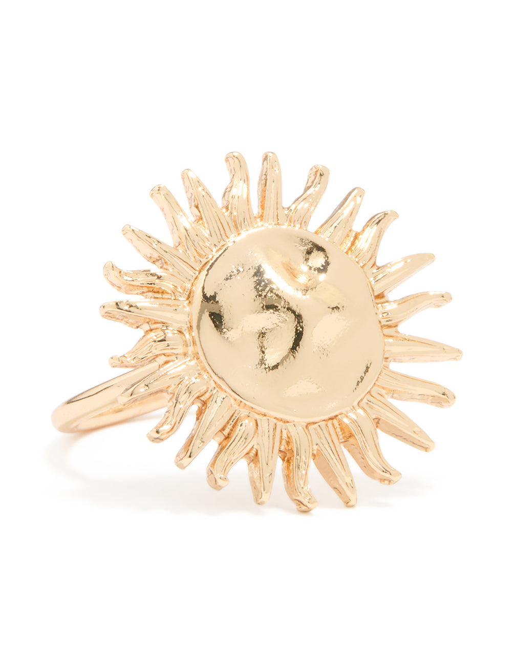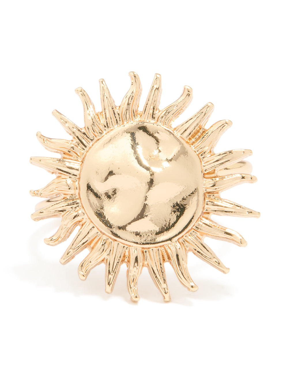 Add a touch of radiance to your look with this Gold Modern Sun Ring. Designed with a sleek and contemporary sun design with a molten texture, this stunning ring is perfect for anyone who loves bold yet elegant jewellery. Its golden finish exudes a vintage charm while staying effortlessly modern, making it ideal for everything from casual coffee dates to special occasions. Whether worn solo or stacked with other rings, this versatile piece pairs beautifully with flowy dresses or tailored outfits.