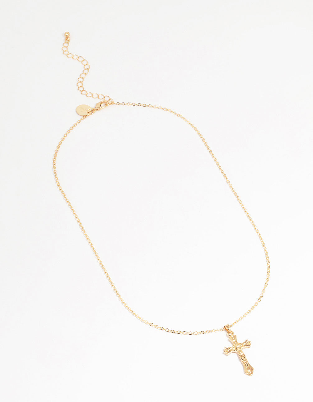 Elevate your everyday style with this Gold Molten Cross Pendant Necklace. This pendant necklace features a molten texture cross-shaped charm for a cool statement look.