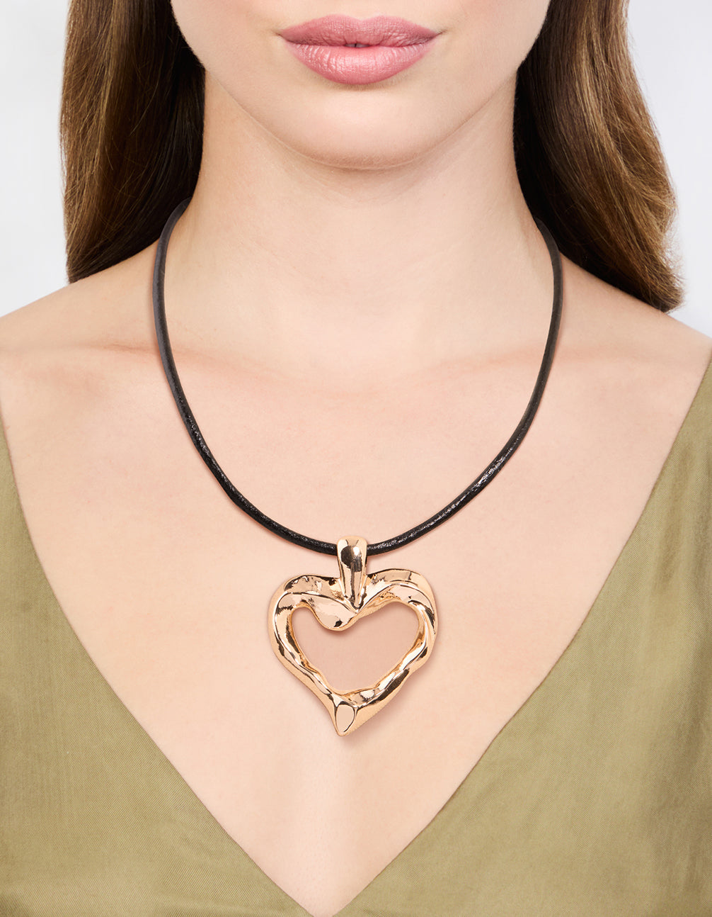 Add some love with our Gold Molten Heart Cord Pendant Necklace! This necklace features a stunning molten heart pendant on a sleek cord base for a fun look.