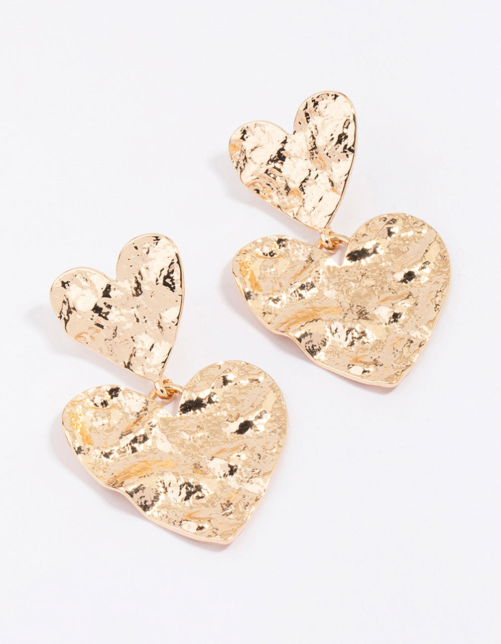 For a lovable touch to your outfit, style these gorgeous, gold-toned drop earrings. These unique drops feature two, overlapping heart motifs — designed with a molten texture finish. Perfect for adding impact to your look!