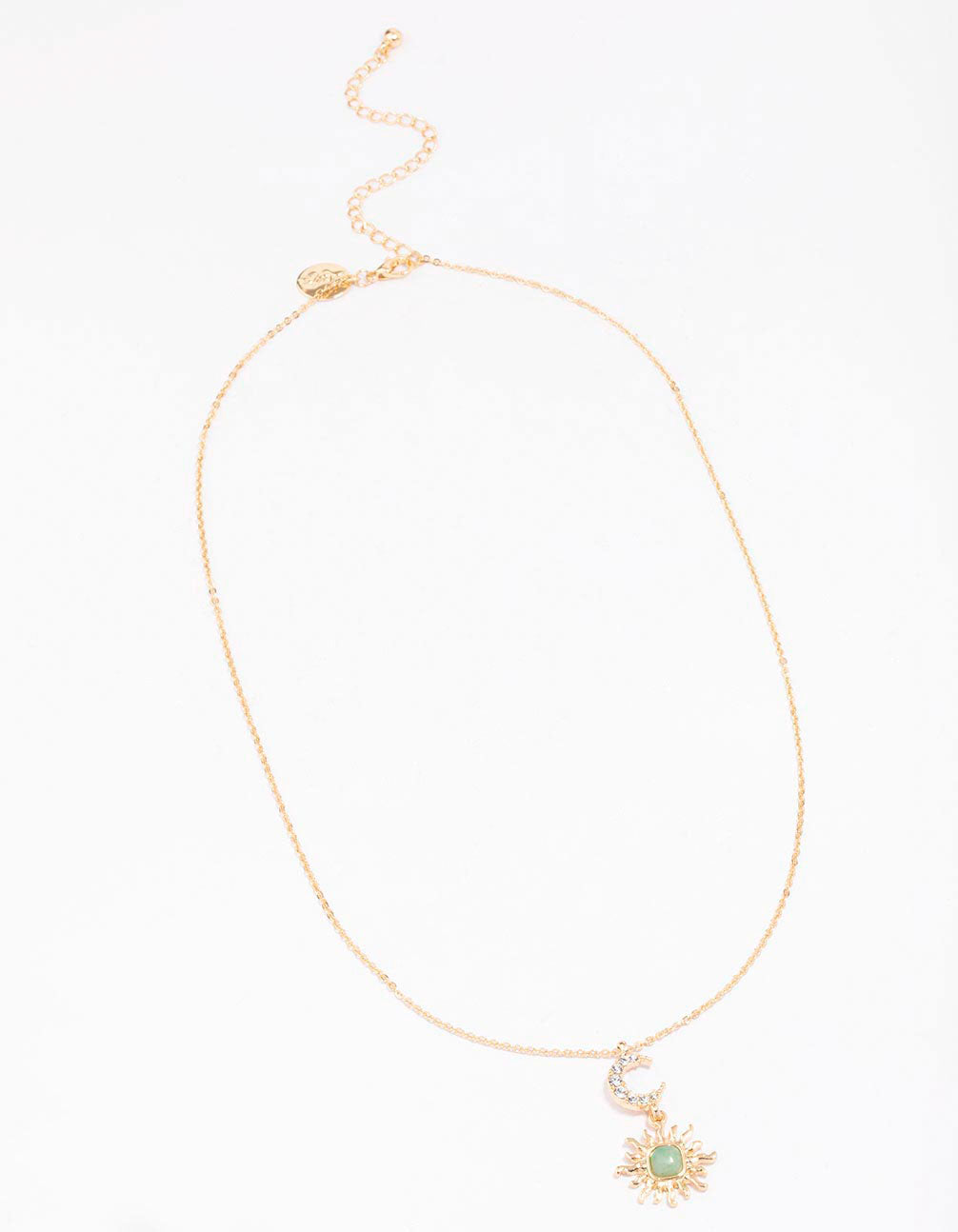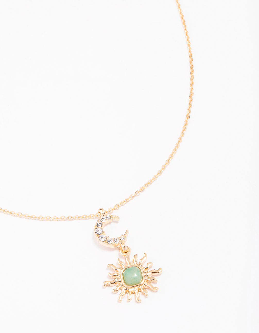 Gold Moon & Sun Semi-Precious Pendant Necklace