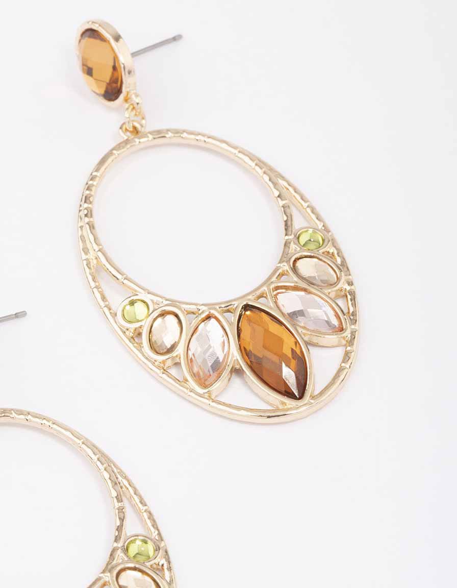 Gold Multi Gem Oval Drop Earrings